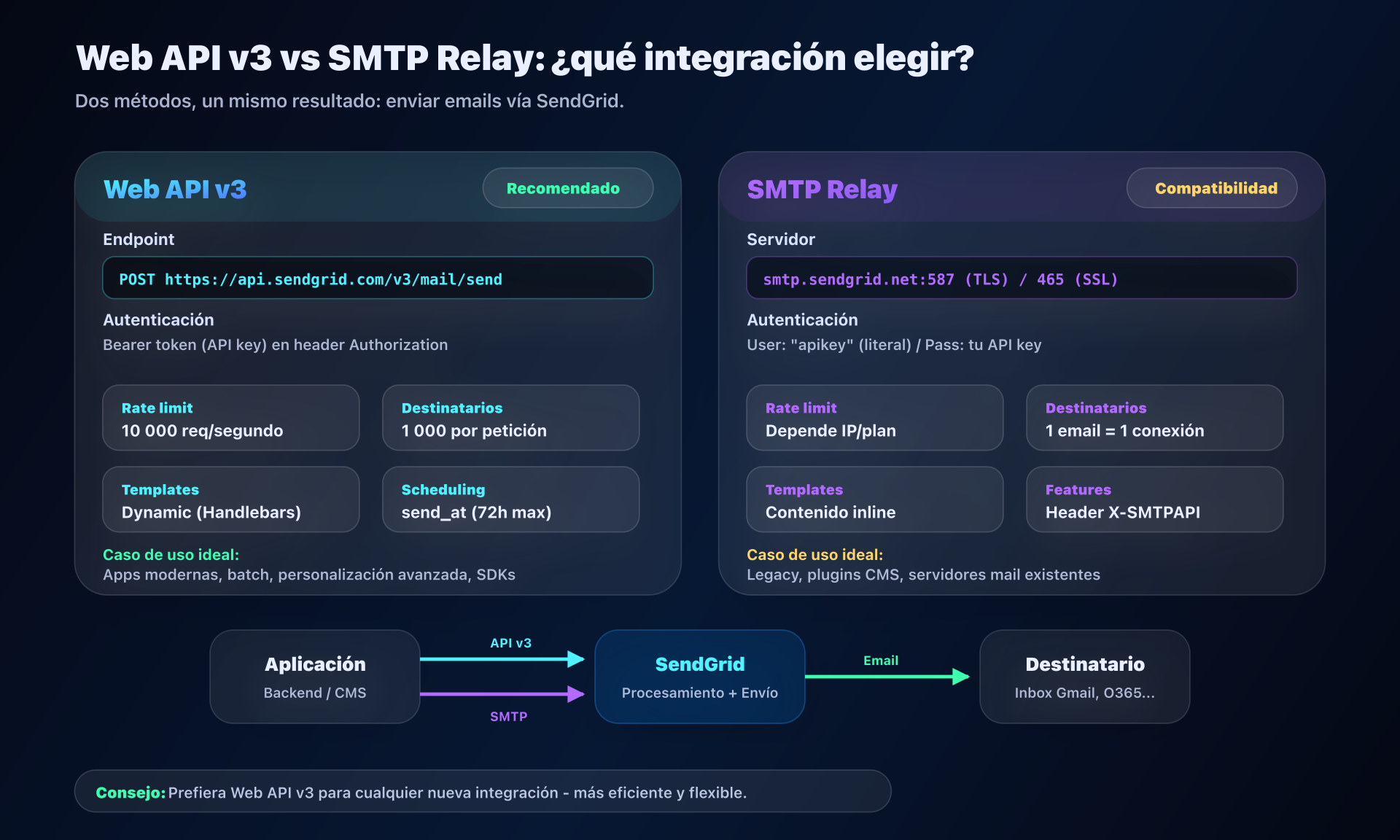 Web API v3 vs SMTP Relay: arquitectura y elección de integración