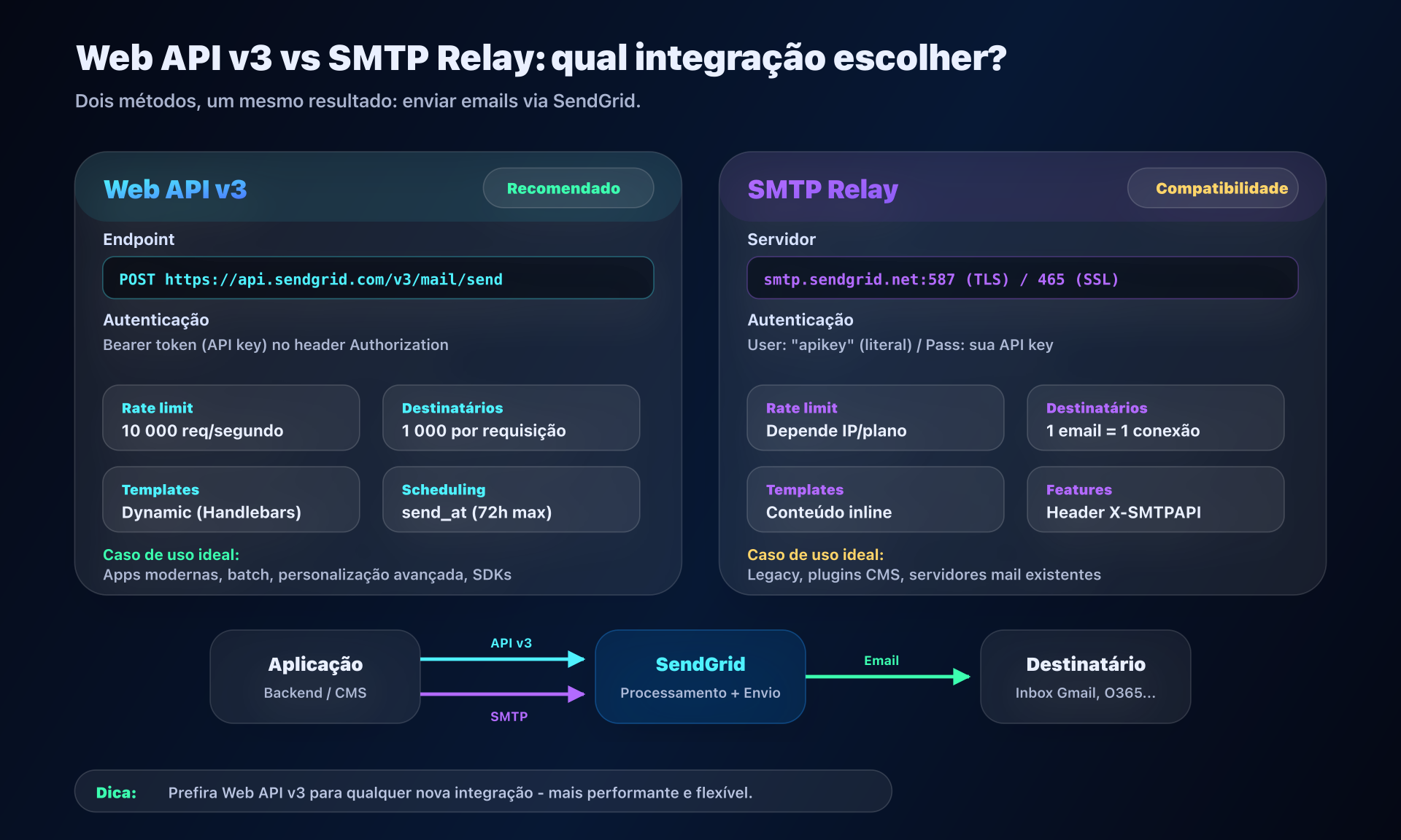 Web API v3 vs SMTP Relay: arquitetura e escolha de integração